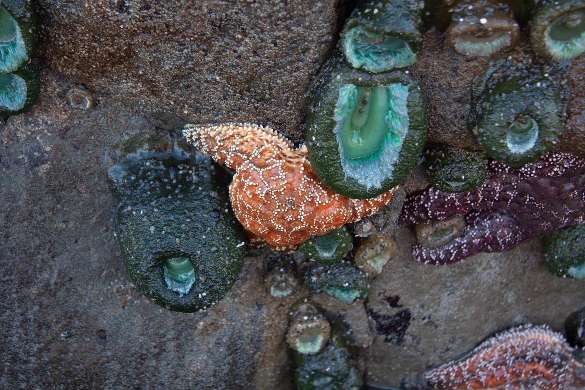 Once we got to the tidepools, we walked around and explored the area for a good bit. Sam would slip on the rocks a few times and fall into the water. The area was covered in muscles, ascidians, barnacles, and starfish. We ventured onto these rocks that jutted pretty far out from the shore, and noticed some otters frolicking in the water. I tried to capture them on my camera, but my lens didn't quite have the zoom. We explored for a bit more before beginning our drive to Seattle drop off Nick at the airport. The Manifest journey was coming to an end.